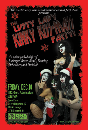 On Valentines Day at the Lusty Lady SF, come witness a night of Dark Desires. An evening of leather and lace with Gothic beauties seducing you all night long. It will hurt so good.